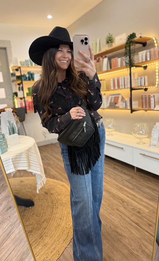 Running Horses Long Sleeve Fringe Snap Shirt by Rock n Roll Denim
