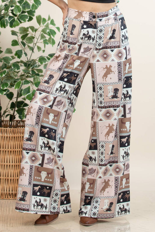 Hilda Vintage Western Print Wide Leg Pants