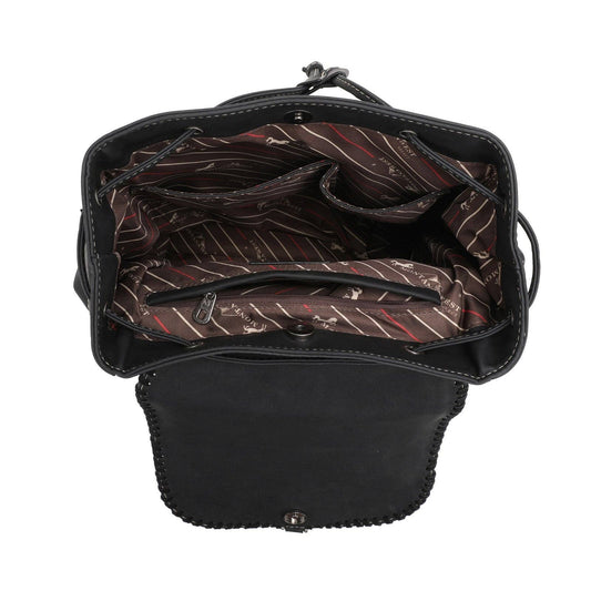 Montana West Genuine Leather Fringe Tooled Collection - Black
