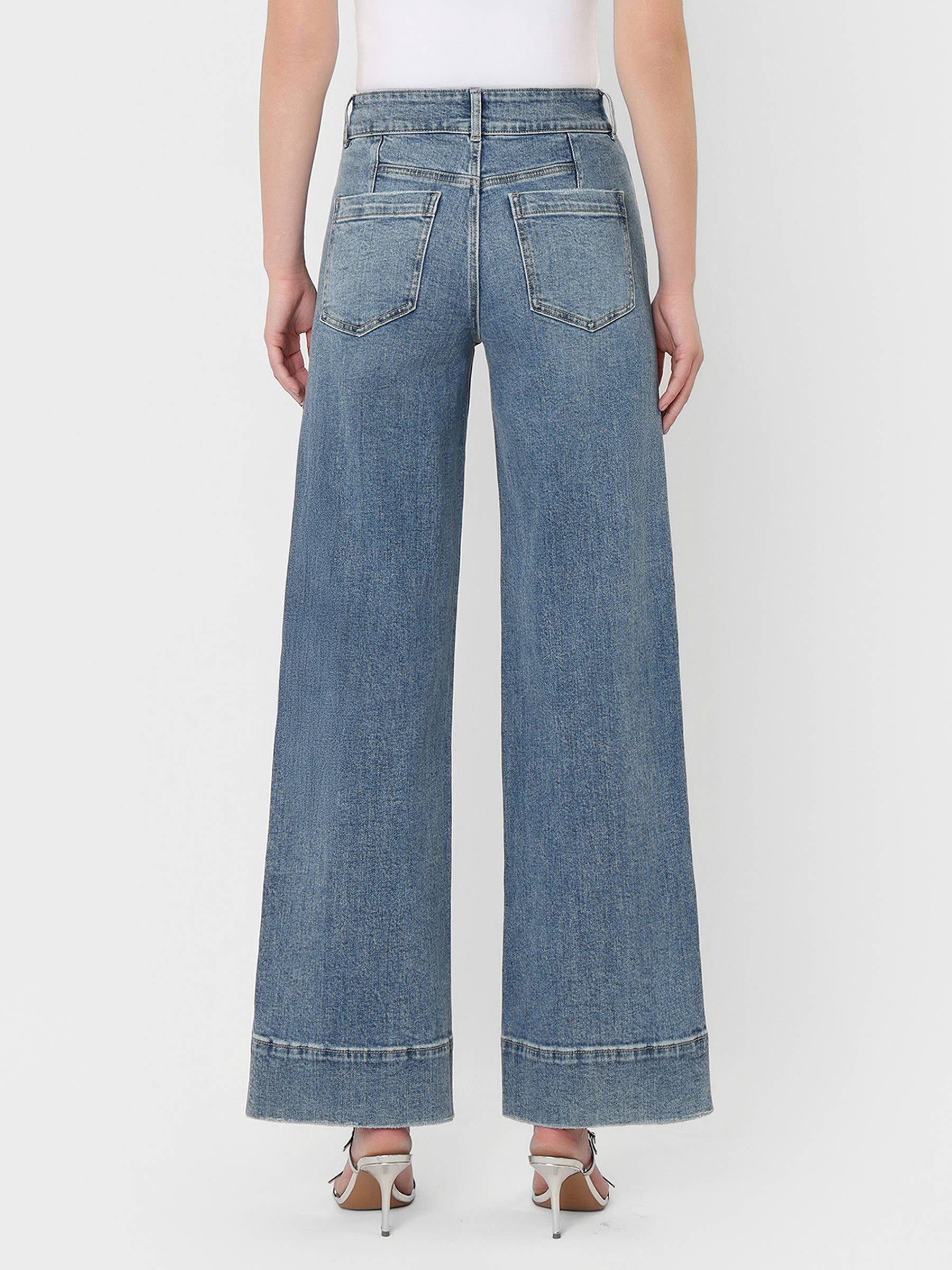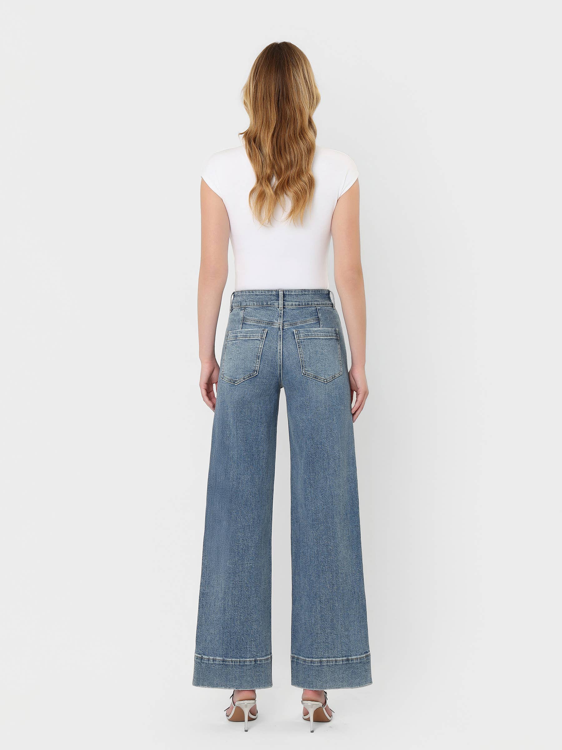 Meet your new go-to statement denim. The High Rise Half Yoke Wide Leg Jeans by Flying Monkey feature a super high rise waist with a flattering wide leg silhouette that gives effortless, elevated style. Designed with a modern half yoke and double-button closure, these jeans hug the waist while offering all-day comfort thanks to their soft stretch denim.