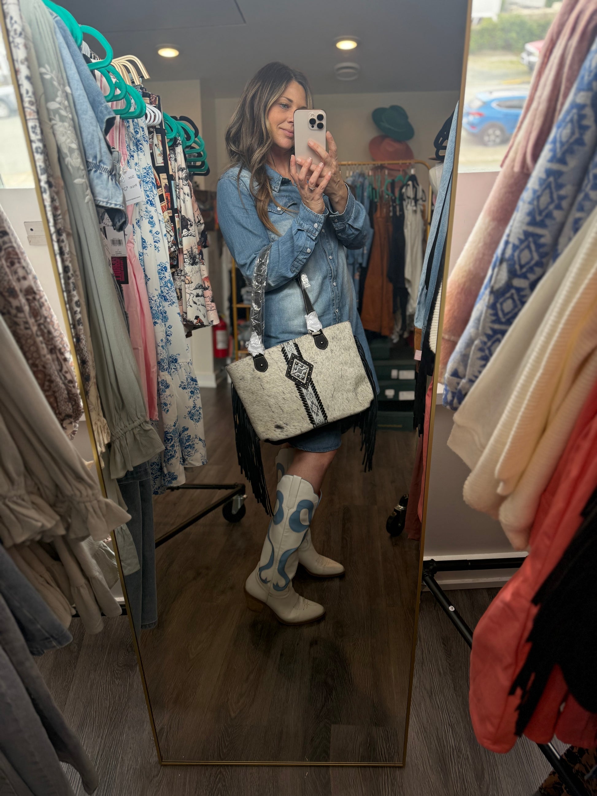 - Leather fringe on the sides