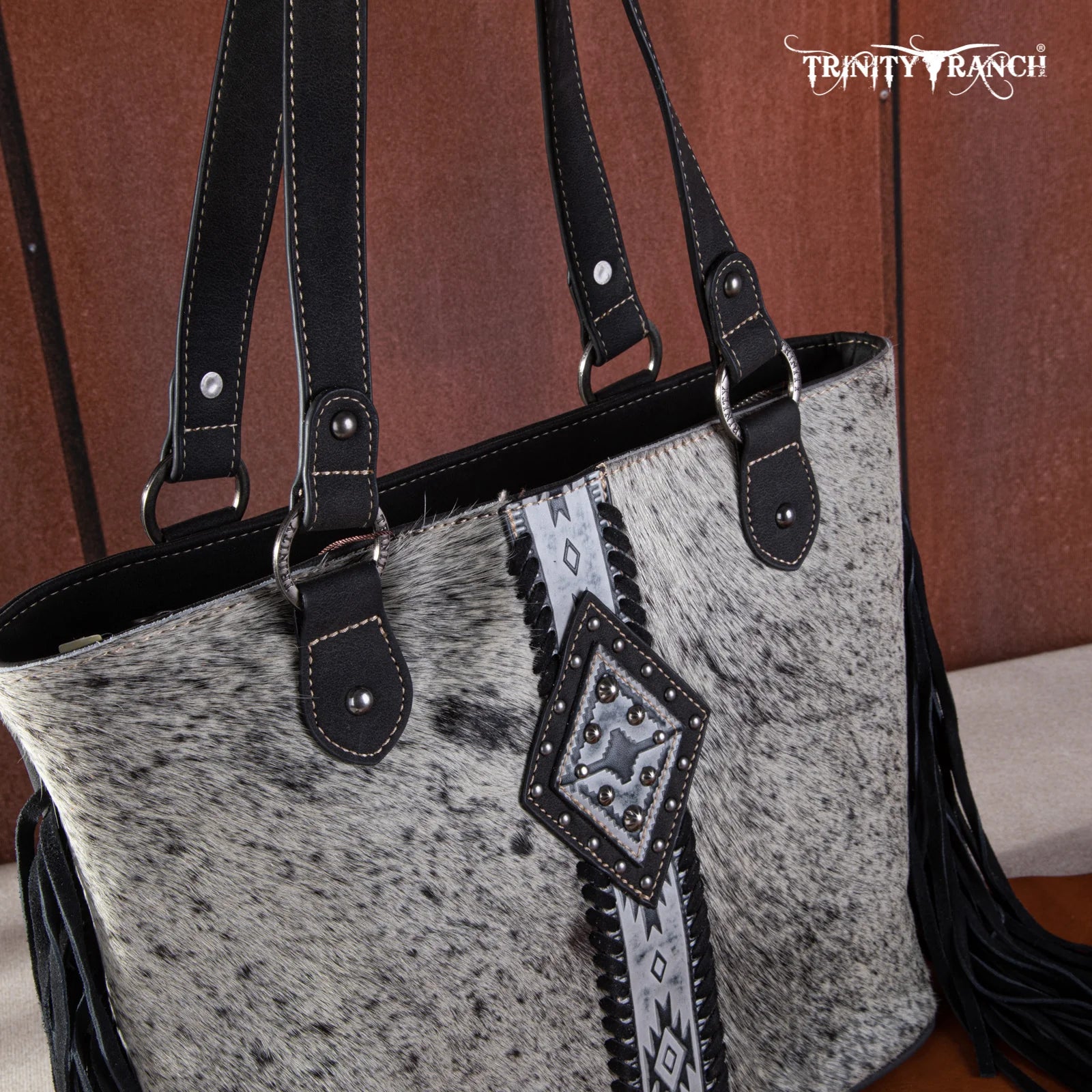 Trinity Ranch Hair On Cowhide Concealed Carry Tote - black and white hide